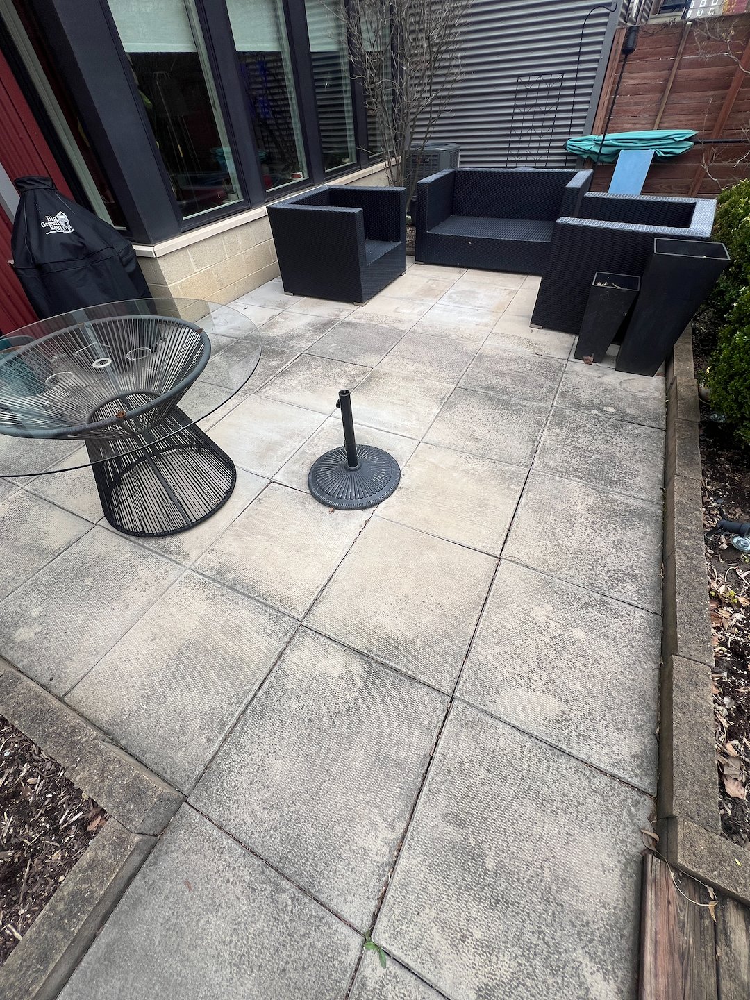 Beyond the patio, our team tackled the block foundation cleaning, a crucial maintenance task often overlooked by many homeowners. Foundations in Western Pennsylvania are prone to moisture retention, which leads to unsightly algae and mildew buildup. We meticulously cleaned the masonry and followed up with specialized spot treatments on high-traffic areas and deep-set stains. This targeted approach ensures that even the most difficult blemishes are neutralized, protecting your foundation’s integrity and keeping your home looking pristine from the ground up.