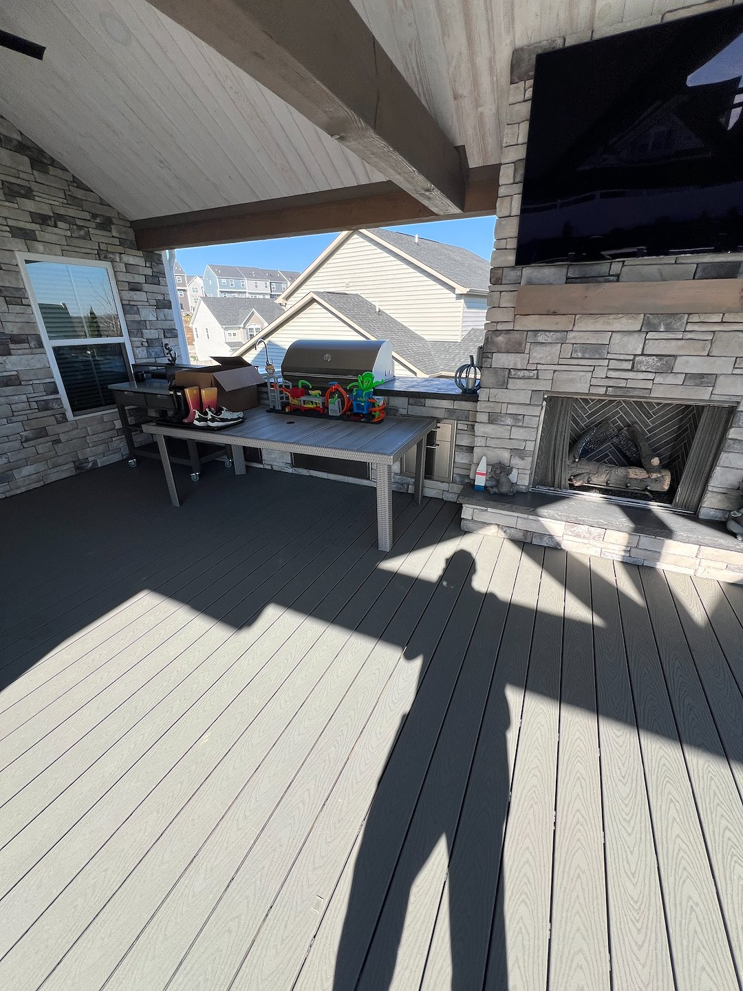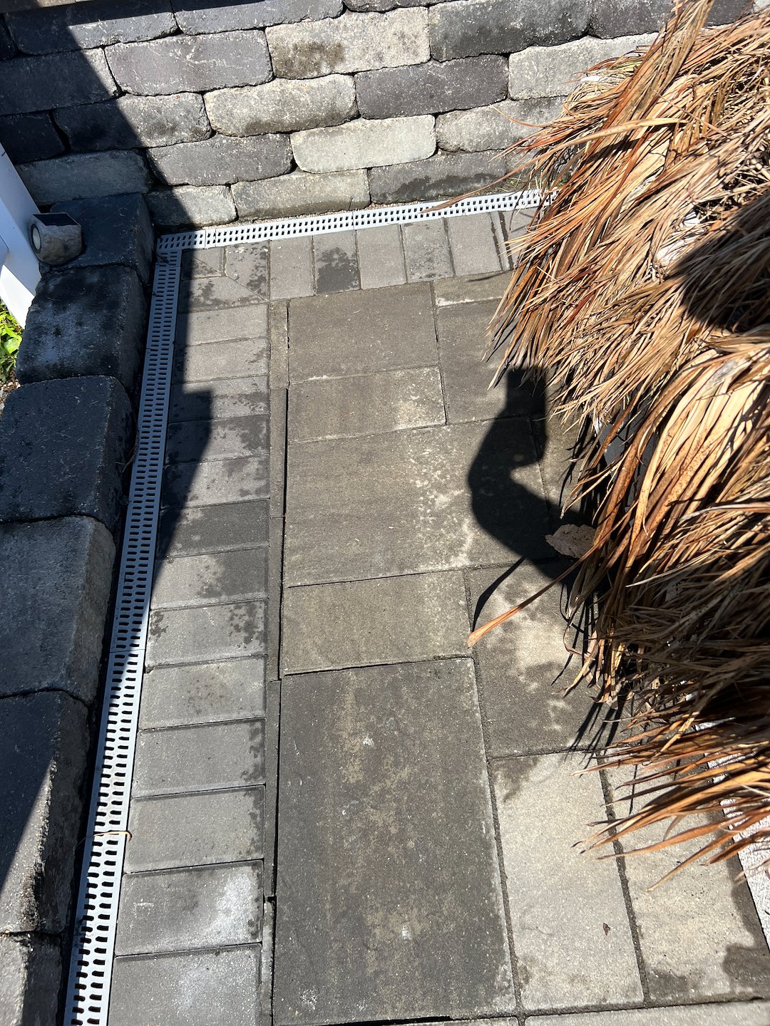 The detailed stonework on the outdoor fireplace and bar area (as seen in the photos) requires a delicate touch. At J&R Pressure Washing, we use a specialized soft-wash process for these vertical stone surfaces and the composite deck to ensure a deep clean without the risk of etching or damage. Our team meticulously cleaned every inch of the patio pavers, the pool surround, and the tiered retaining walls, restoring that "just installed" look that makes this North Hills backyard truly stand out.