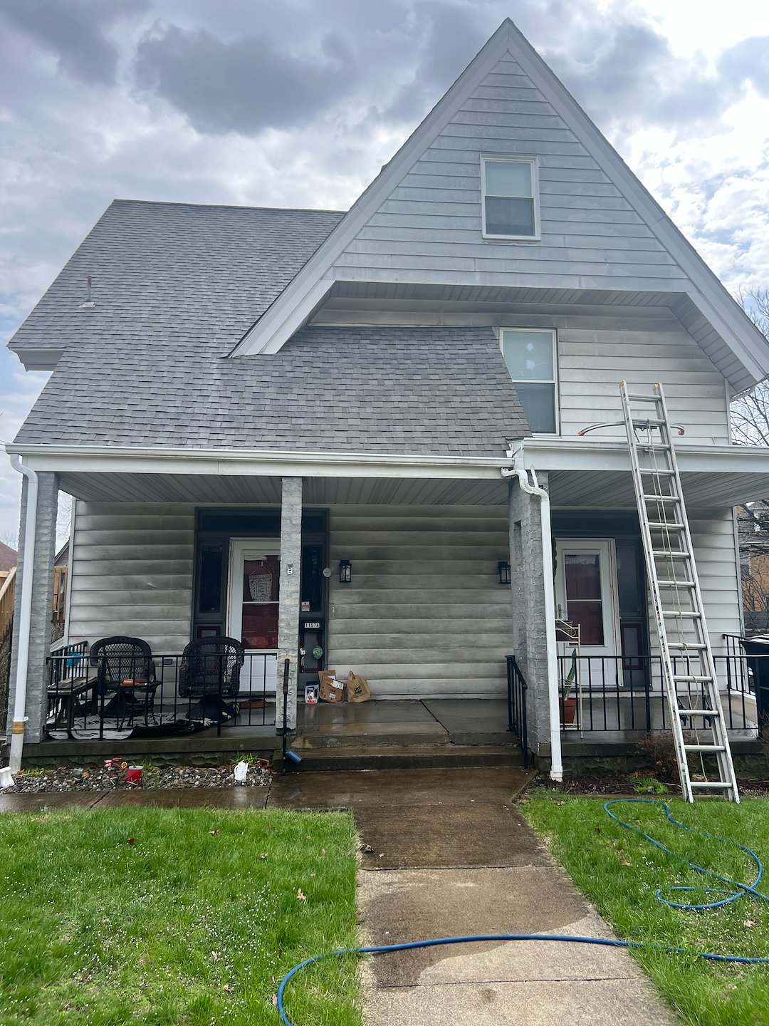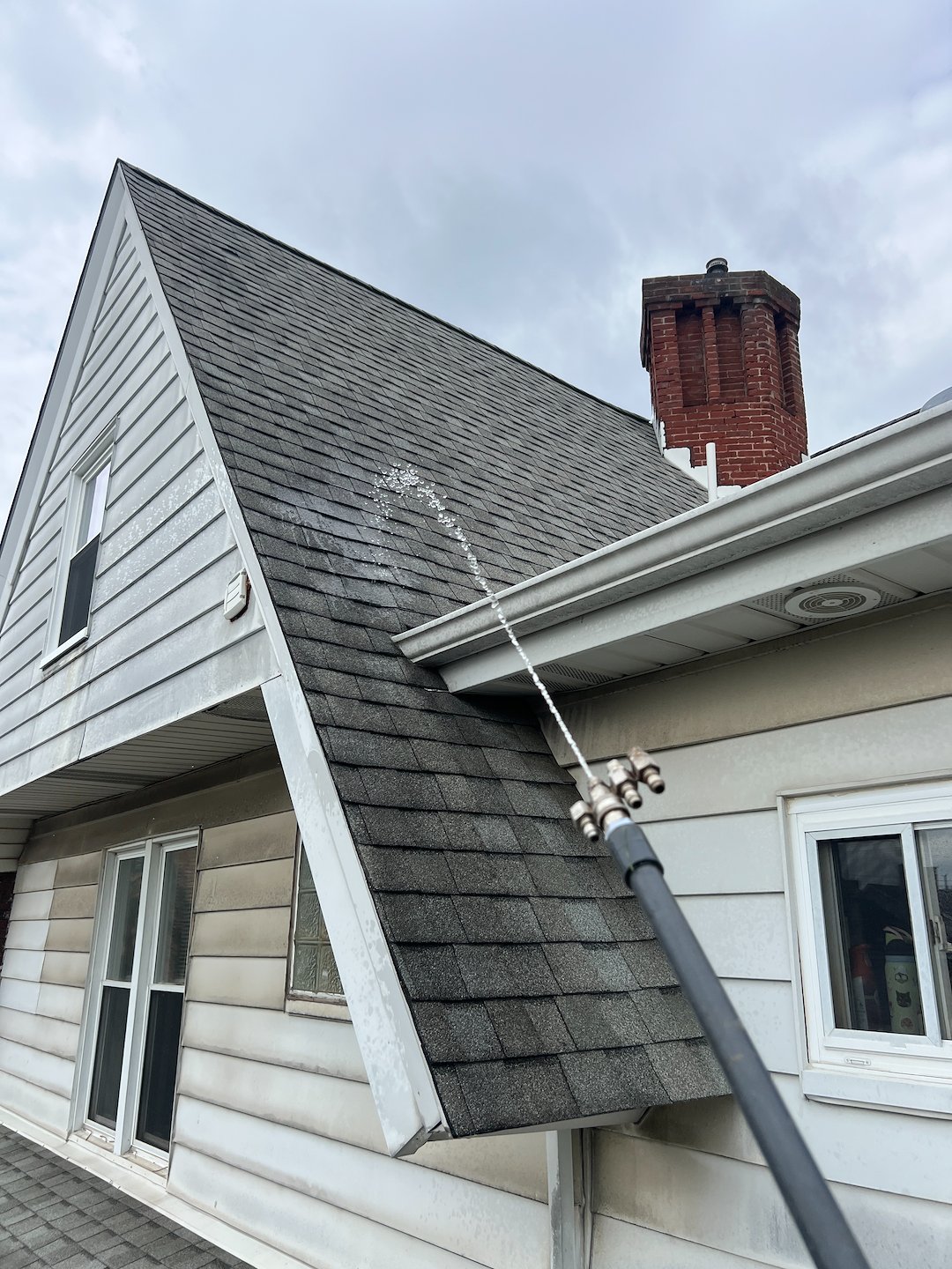At J&R Pressure Washing, we recently headed out to Ross Township to tackle a challenging roof cleaning project on a beautiful local duplex. Over time, North Hills homes often develop those unsightly black streaks—actually a hardy algae called Gloeocapsa magma—which trap heat and eat away at your shingles. Our team utilized a specialized soft wash roof cleaning technique, ensuring we eliminated every trace of organic growth without using high pressure that could damage the delicate roofing granules.