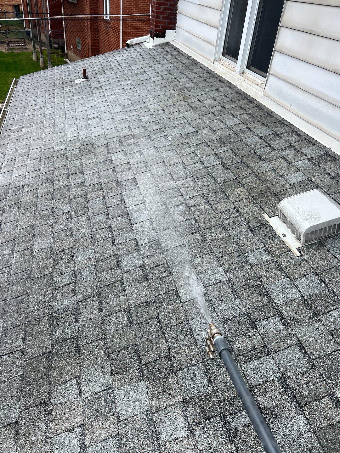 Maintaining a multi-family property like a duplex requires a balance of efficiency and curb appeal, and this Pittsburgh roof wash delivered both. By choosing a professional soft wash over standard power washing, we were able to safely treat the entire surface, extending the life of the roof and instantly boosting the property's value. The transformation was night and day, stripping away years of soot, moss, and lichen to reveal the original color of the shingles beneath.